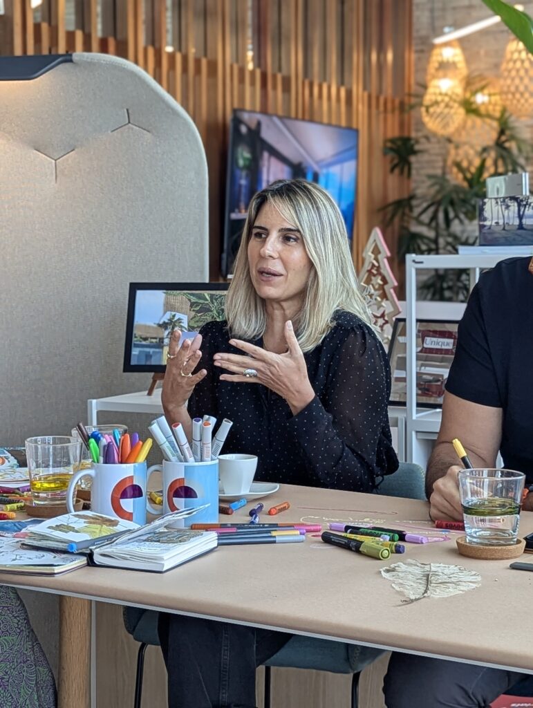 Virginia Cabral conduce el encuentro desde una escucha activa, permitiendo que las ideas se desarrollen sin prisa. La conversación no busca imponer conclusiones, sino abrir preguntas. ¿Cómo habitamos? ¿Desde dónde creamos? ¿Qué estamos priorizando cuando diseñamos?